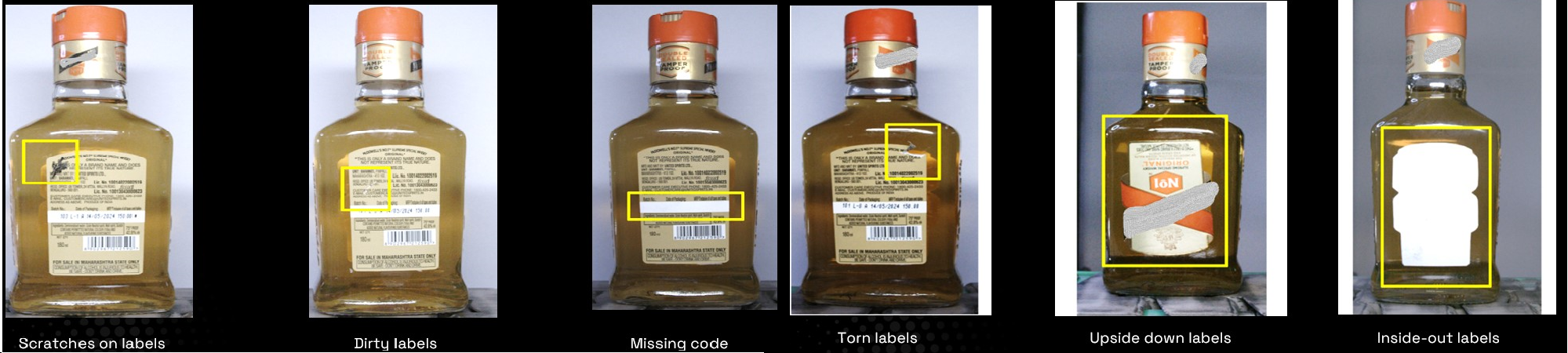 - Bottles with torn, scuffed, or bubbled labels could slip through, risking brand image and regulatory non-compliance.
