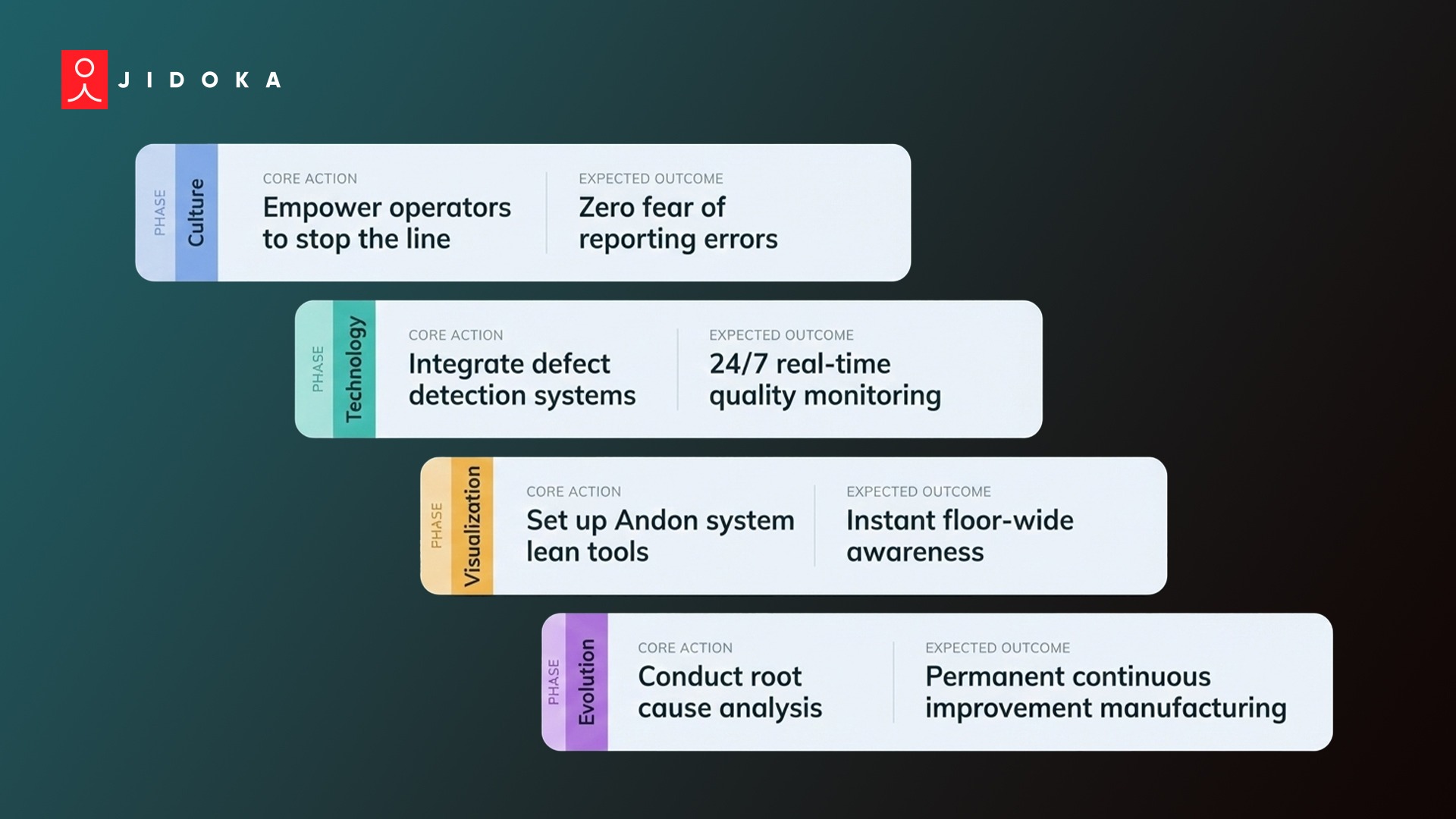 These phases ensure your quality remains high. By following this roadmap, you embrace the full meaning of Jidoka.