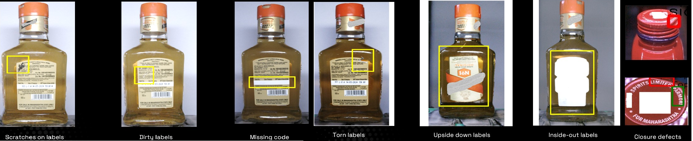 - Bottles with torn, scuffed, or bubbled labels could slip through, risking brand image and regulatory non-compliance.
